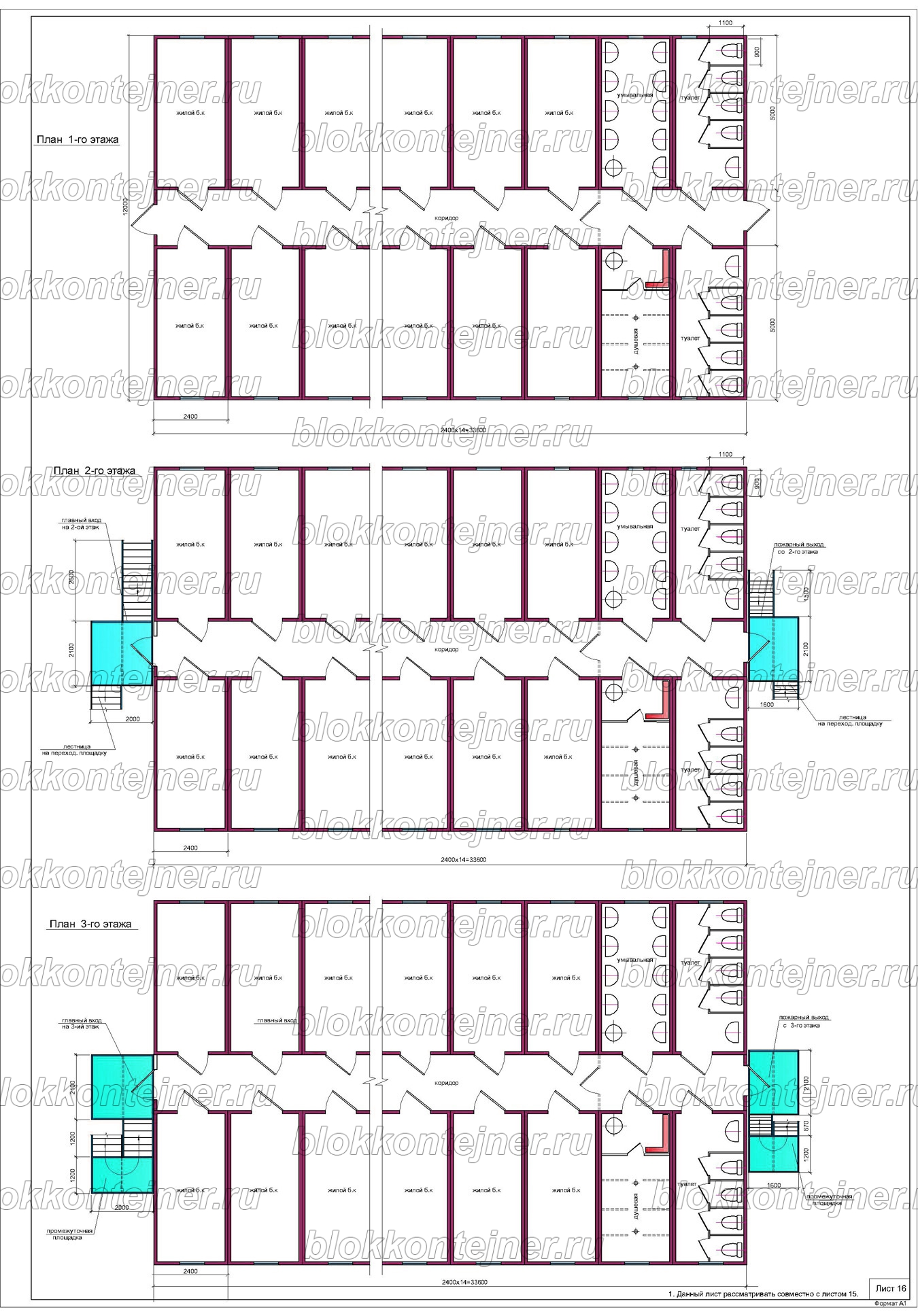 Трехэтажное общежитие на 250 человек из 84 БК
